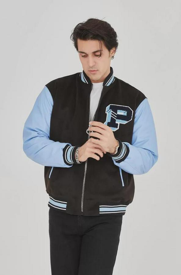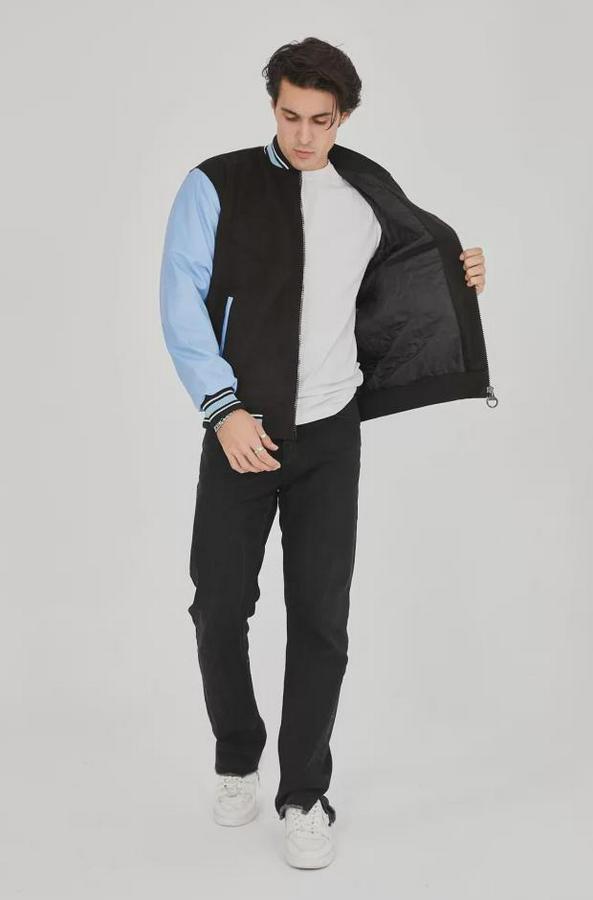 Erkek İçten Elyaf Ve Astarlı Kolları Suni Deri Ceket - Mavi