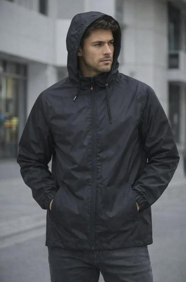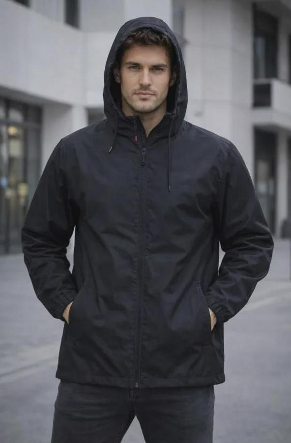 Erkek Kapüşonlu Su İtici Rüzgarlık Ceket Mevsimlik Hafif Mont - Siyah