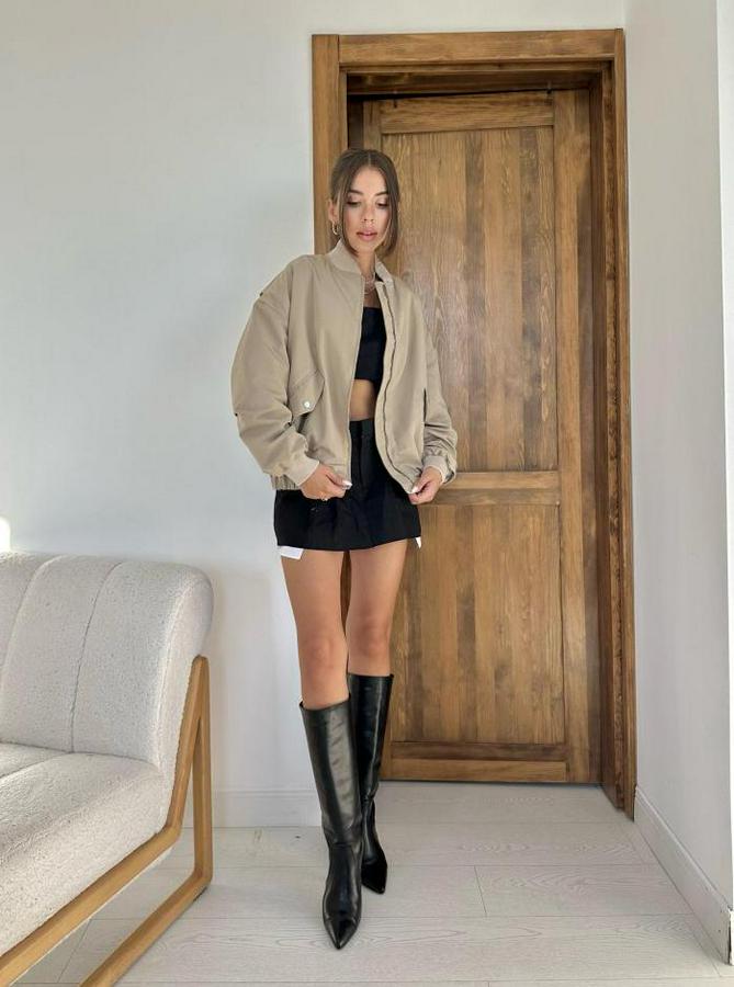 Bej Parçalı Bomber Ceket