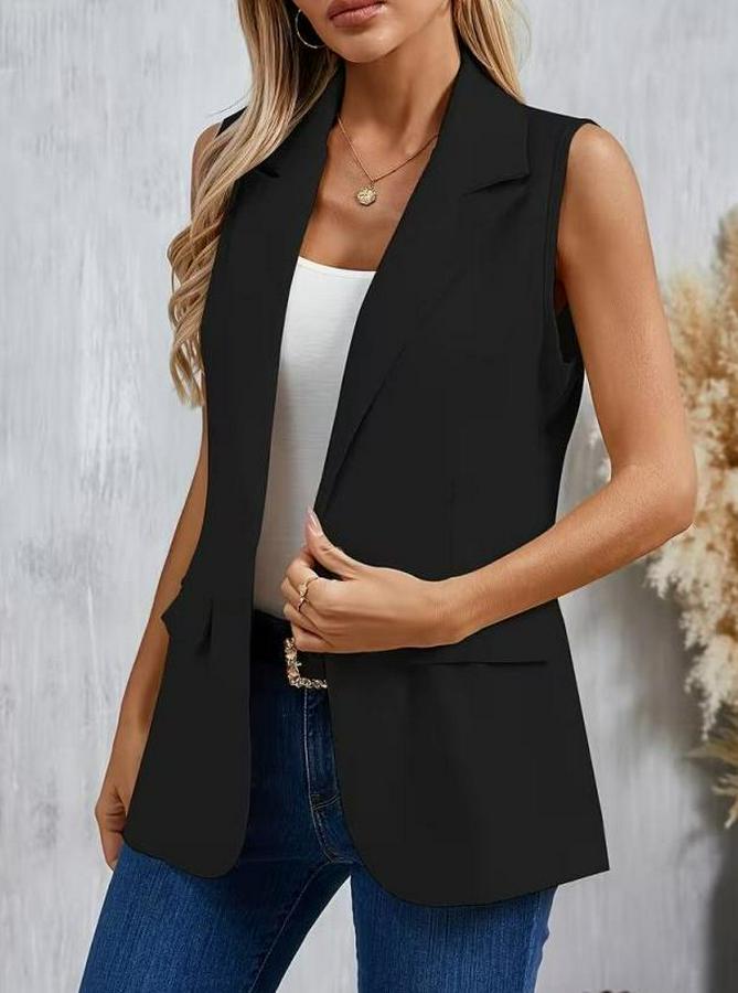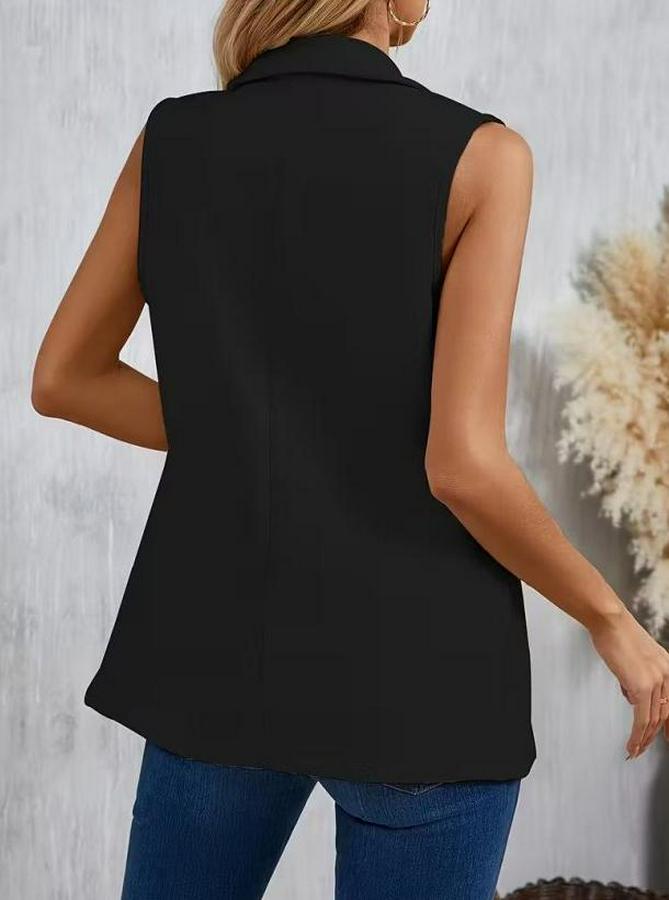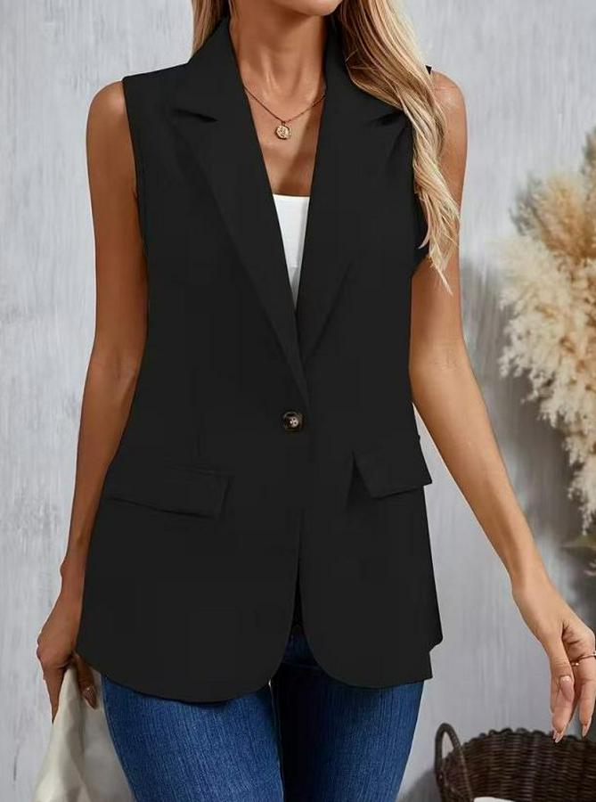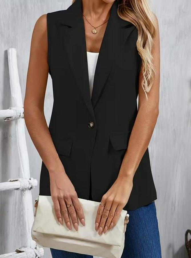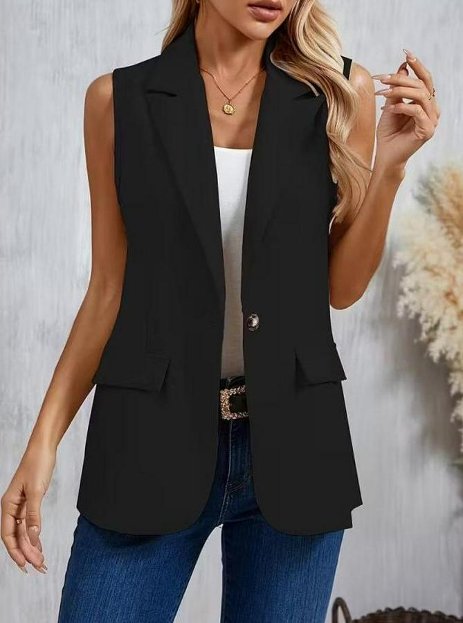 Kadın Kolsuz Yakalı önden Tek Düğmeli Atlas Ceket