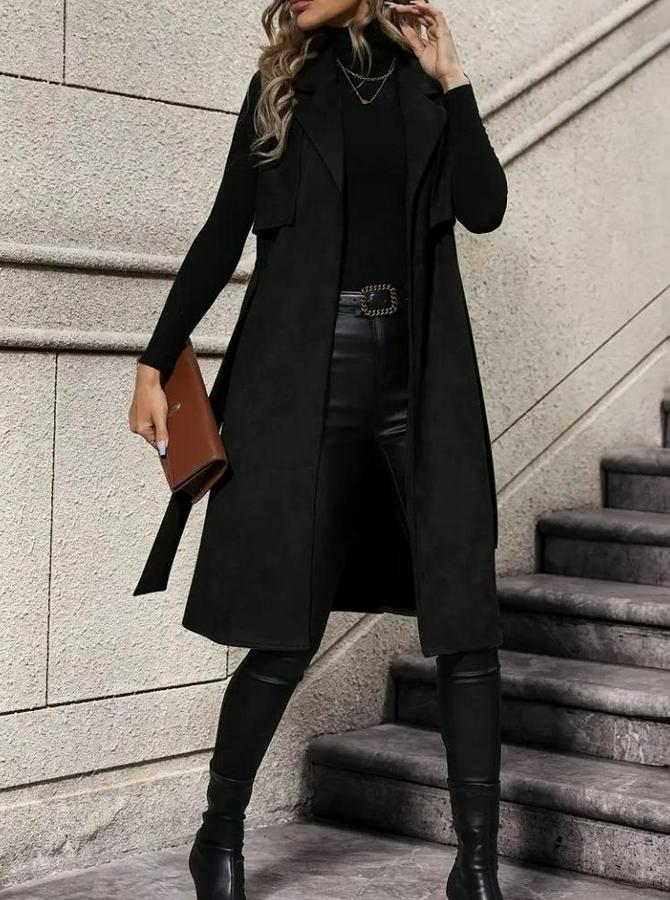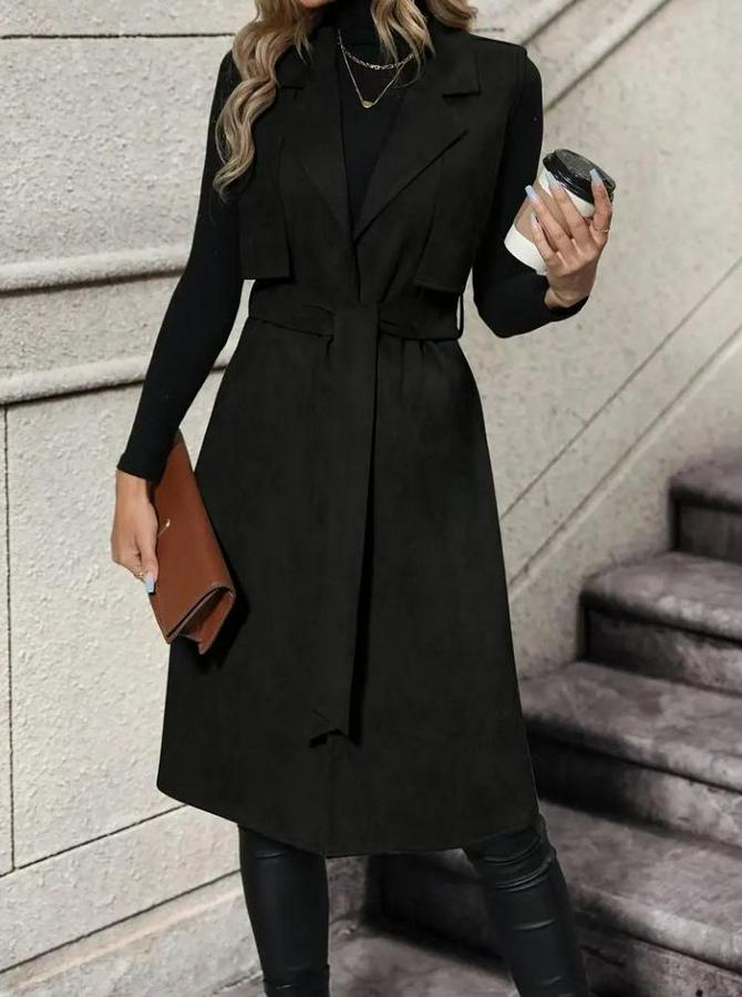 AnasayfaTüm ÜrünlerDış GiyimCeket & YelekCeketKolsuz Yakalı Önü Açık Belden Kuşaklı Süet Midi Yelek