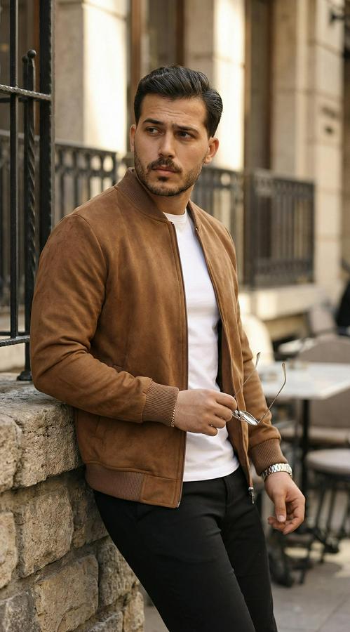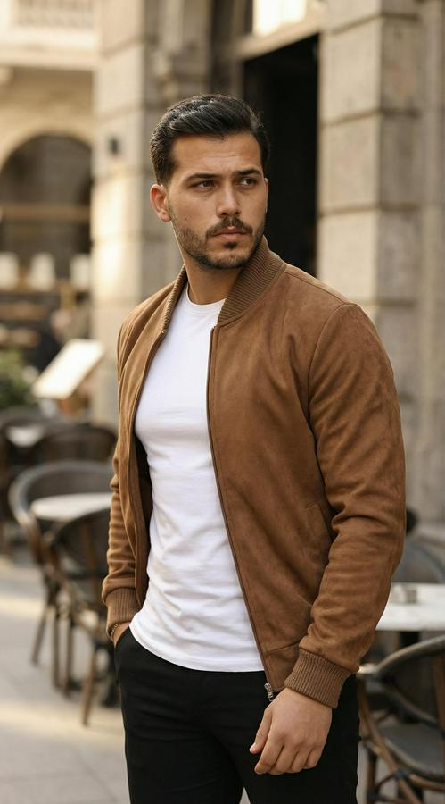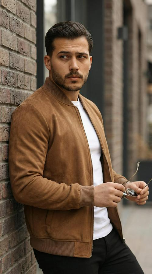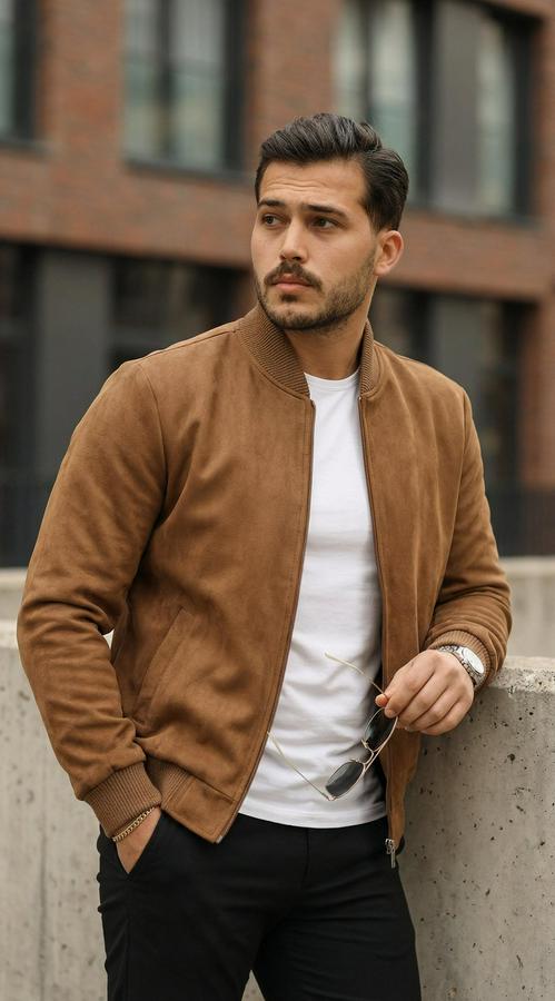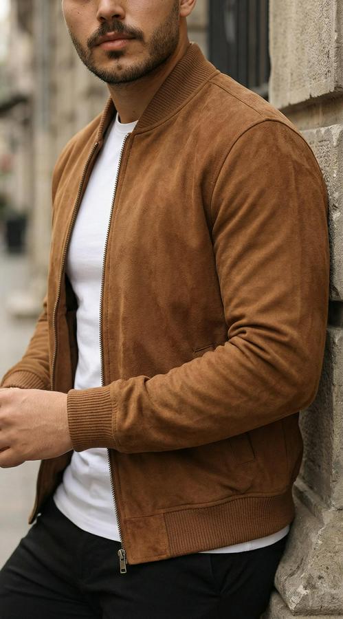 Erkek önden Fermuarlı Içi Astarlı Süet Ceket