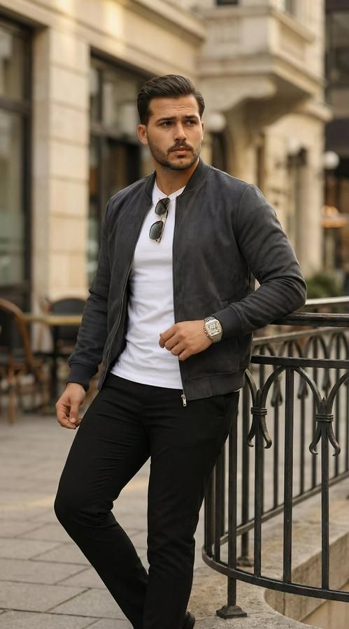 Erkek önden Fermuarlı Içi Astarlı Süet Ceket