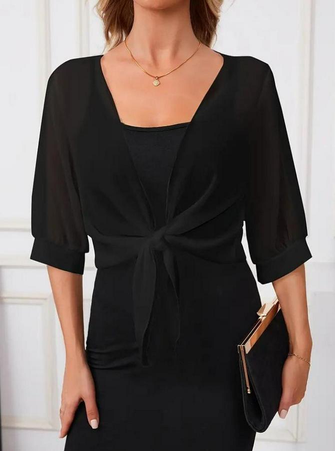 Kadın Truvakar Kol önden Bağlamalı Kısa şifon Bolero Ceket