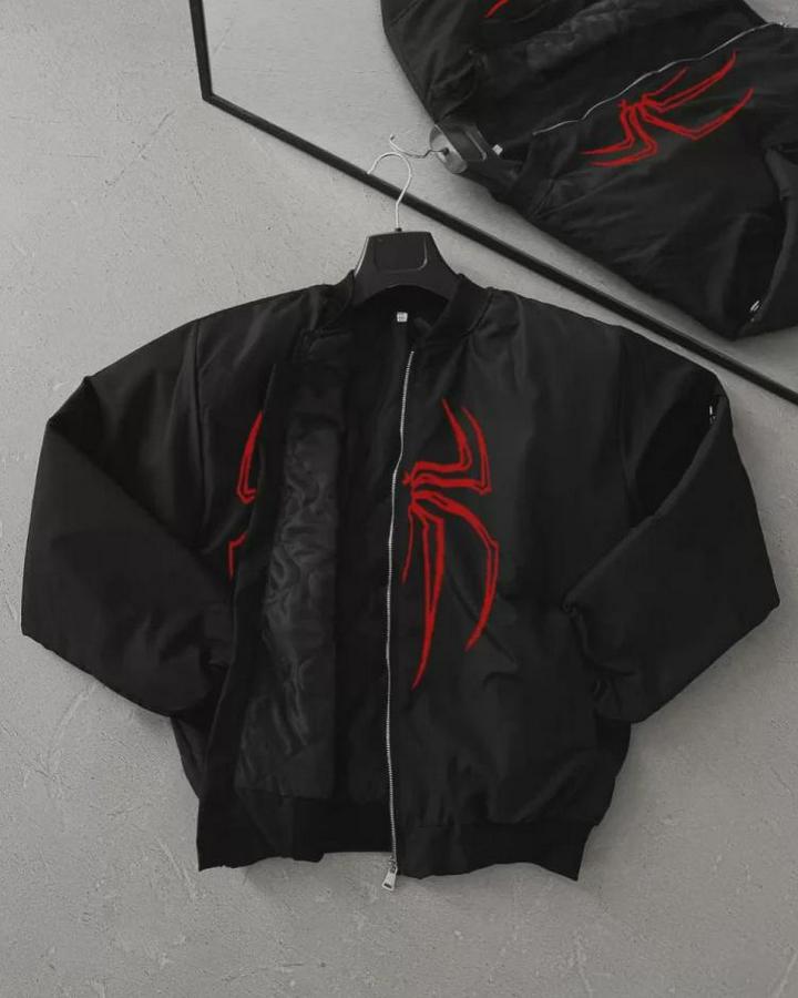 Unisex Uzun Kol Örümcek Baskılı Bomber Ceket