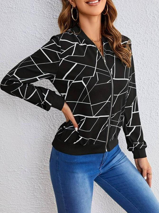 Kadın Uzun Kollu Baskılı Dalgıç Ceket