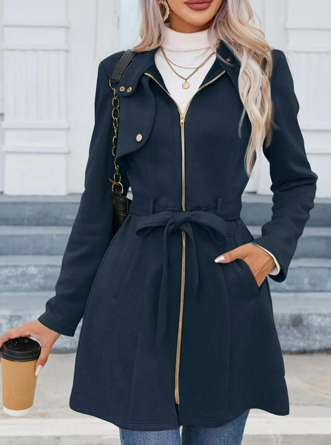 Kadın Uzun Kollu Boyundan Düğmeli Fermuarlı Beli Kuşaklı Süet Ceket