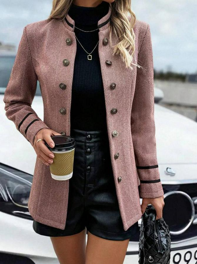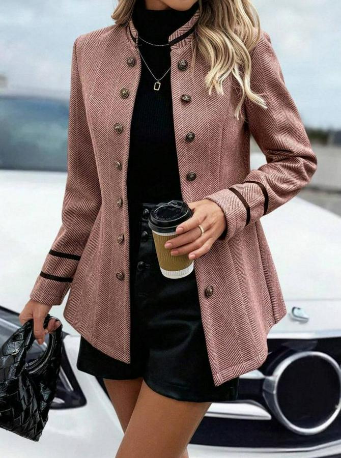 AnasayfaTüm ÜrünlerDış GiyimCeket & YelekCeketUzun Kollu Hakim Yaka Düğme Detaylı Mini Dokuma Ceket