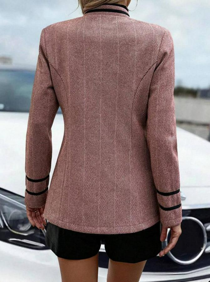 Uzun Kollu Hakim Yaka Düğme Detaylı Mini Dokuma Ceket