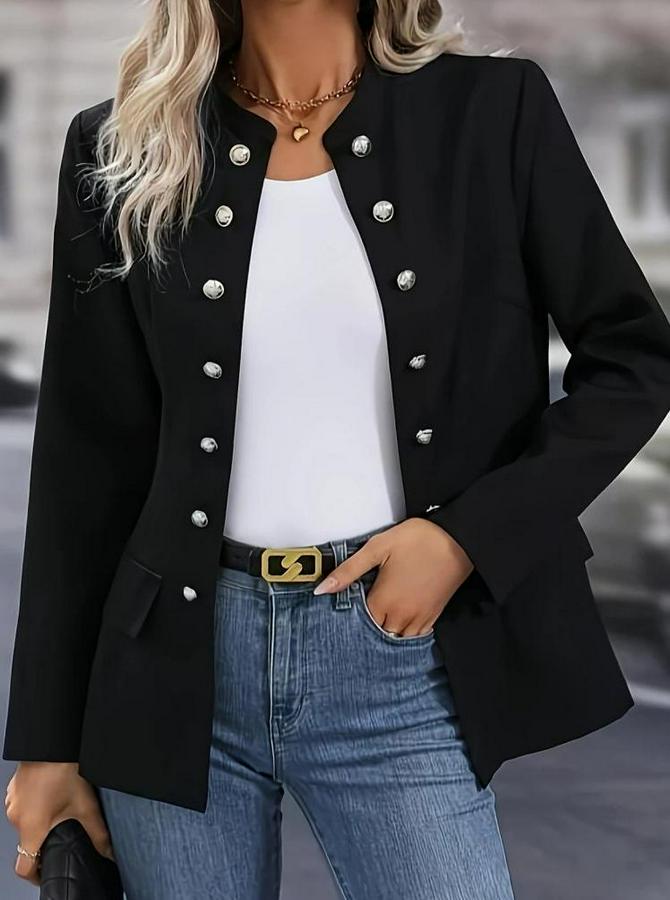 Kadın Uzun Kollu Hakim Yaka önden Düğmeli Kısa Atlas Ceket