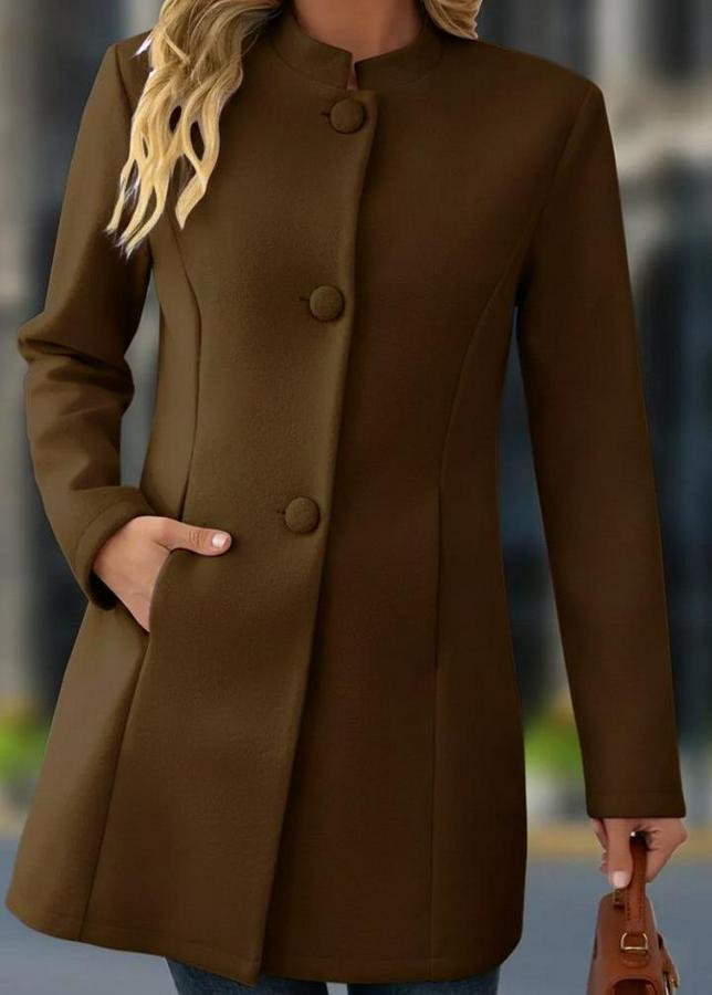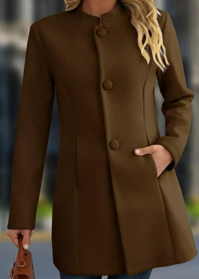 Kadın Uzun Kollu Hakim Yakalı önden Düğmeli Cep Detaylı Kısa Taba Kaşe Kaban