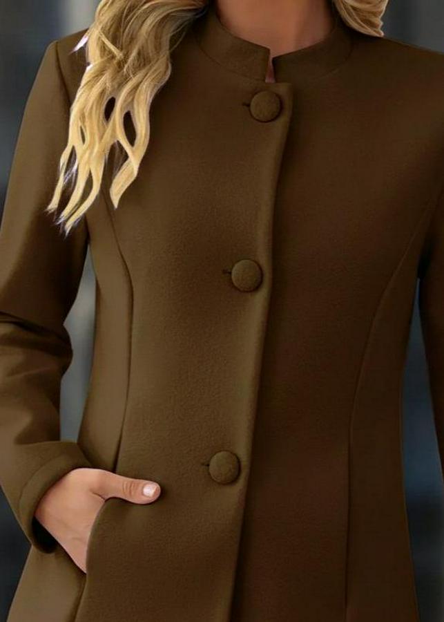 Uzun Kollu Hakim Yakalı Önden Düğmeli Cep Detaylı Kısa Taba Kaşe Kaban