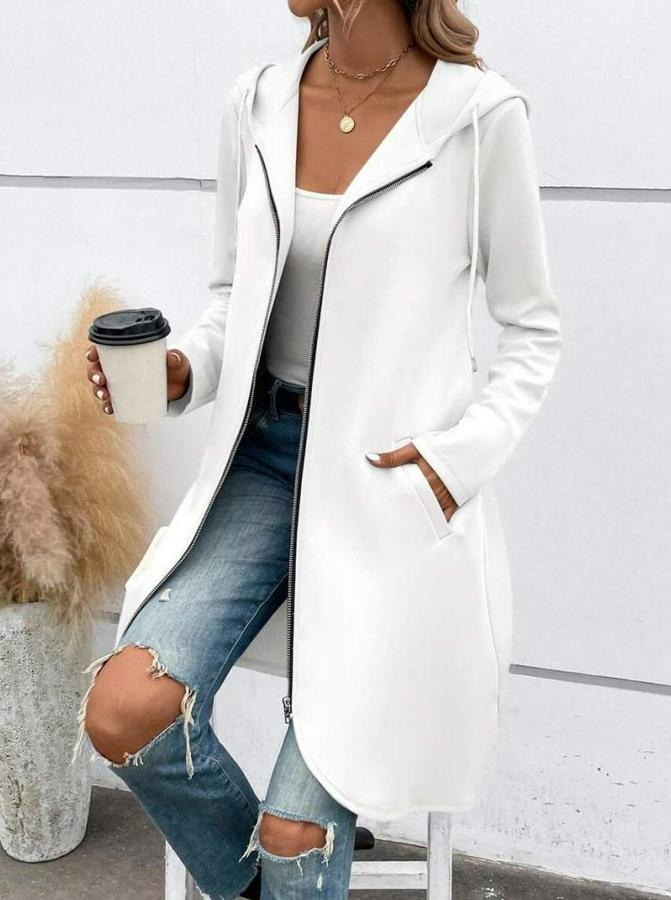 Kadın Uzun Kollu Kapşonlu önden Fermuarlı Midi Dalgıç Ceket