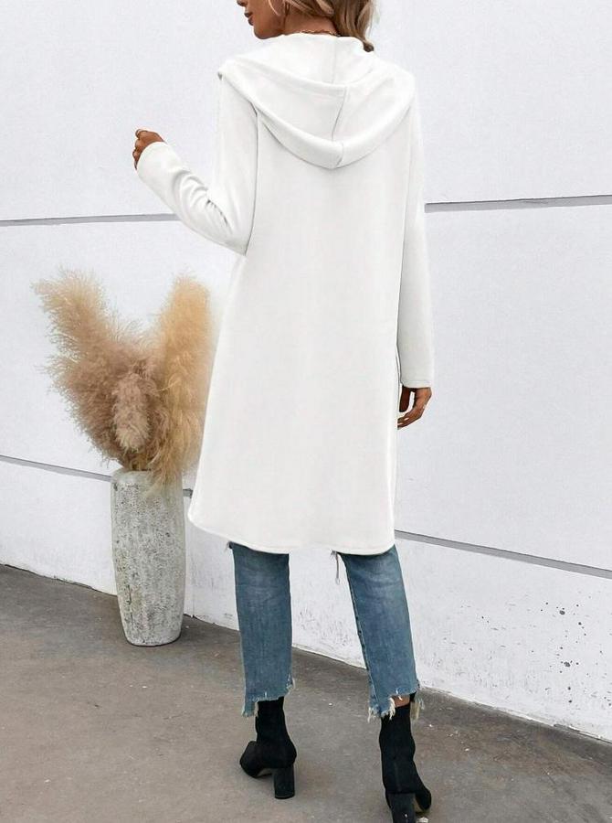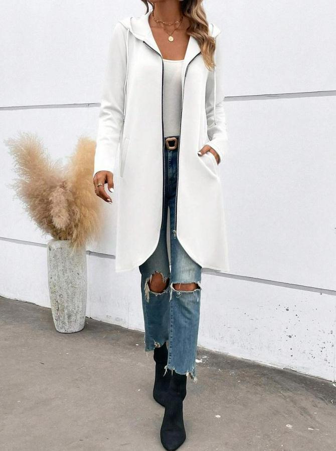 Uzun Kollu Kapşonlu Önden Fermuarlı Midi Dalgıç Ceket