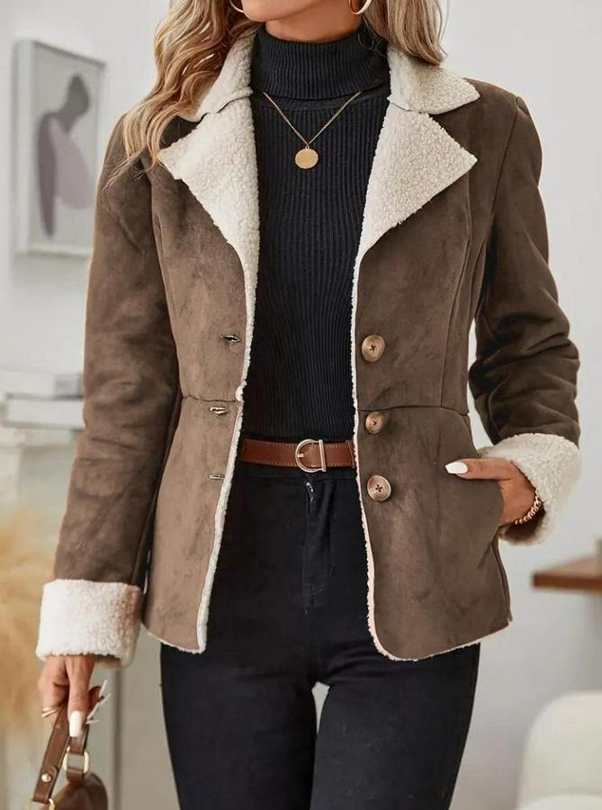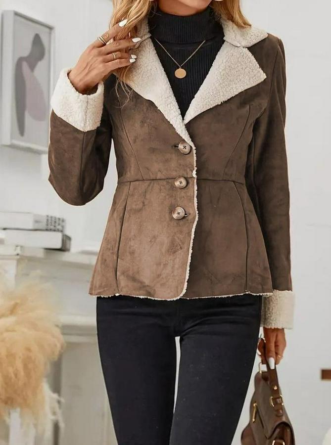 Uzun Kollu Önden Düğmeli Cep Detaylı Kısa Süet Ceket