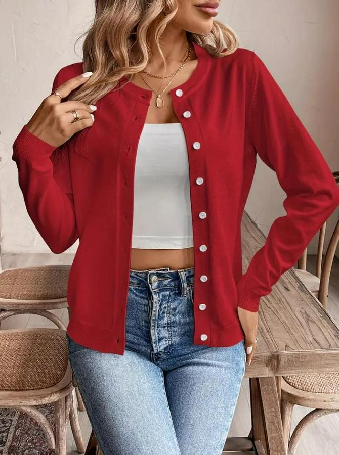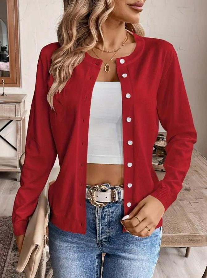 Uzun Kollu Önden Düğmeli Triko Ceket