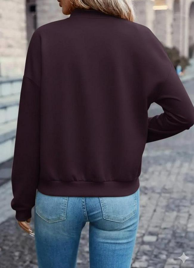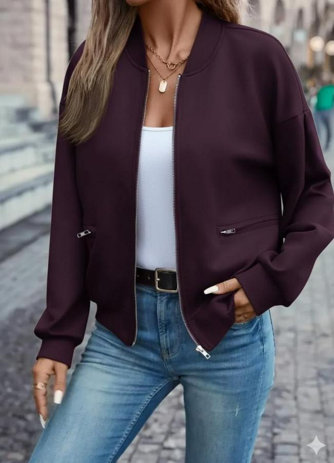 Kadın Uzun Kollu önden Fermuarlı Cepli Modal Mürdüm Ceket