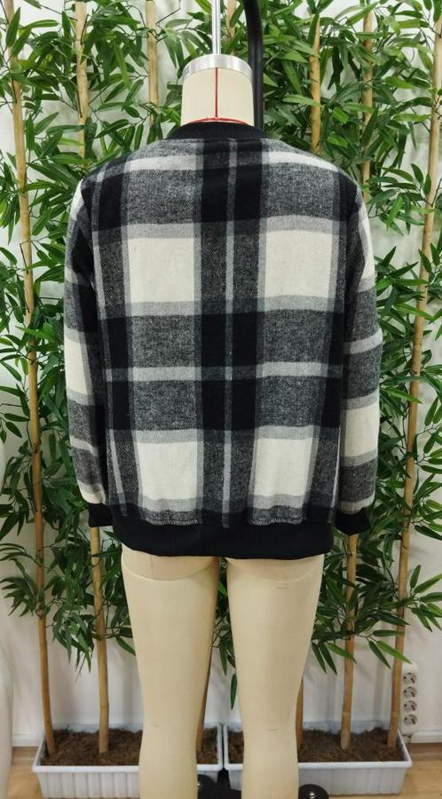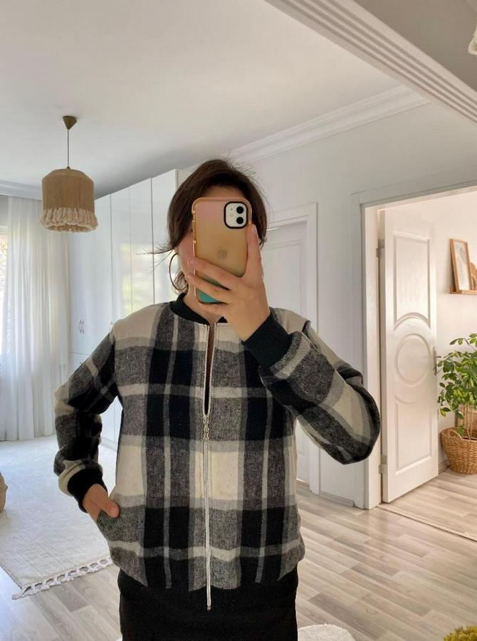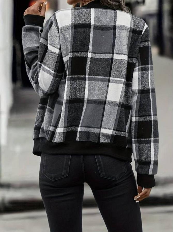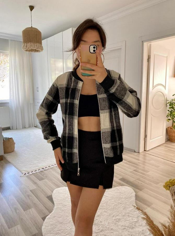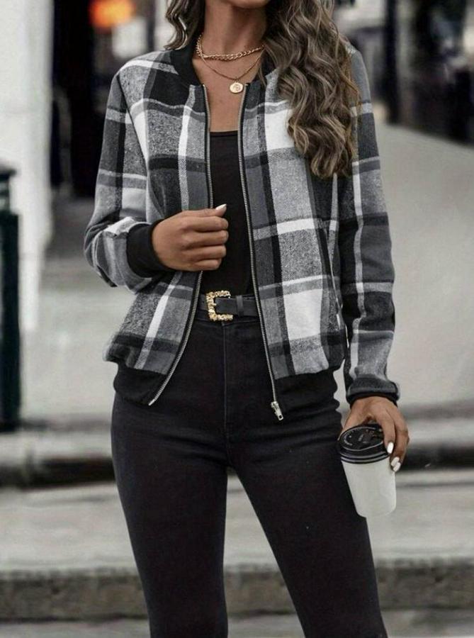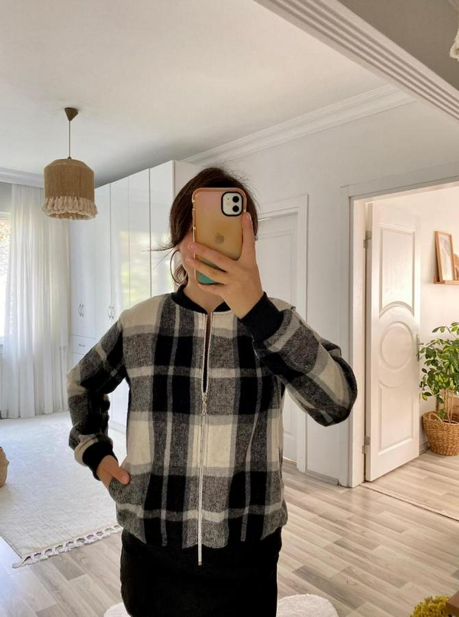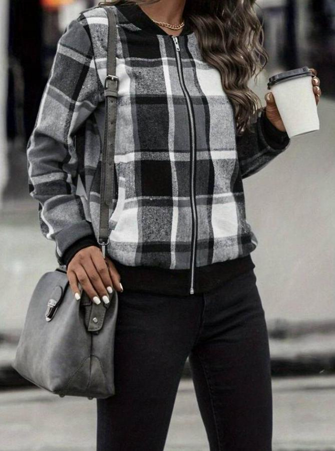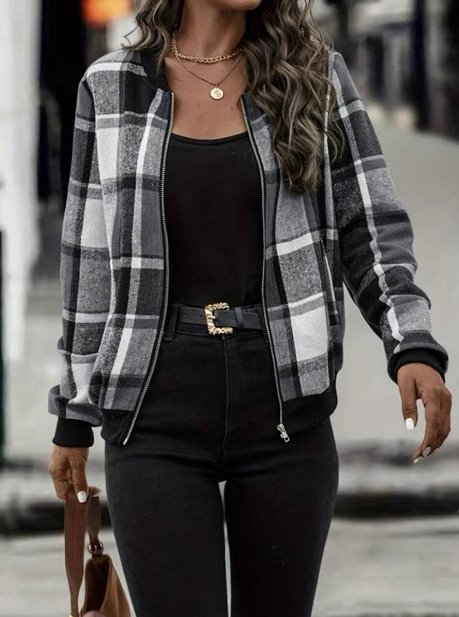 AnasayfaTüm ÜrünlerDış GiyimCeket & YelekCeketUzun Kollu Önden Fermuarlı Ekose Desenli Ceket