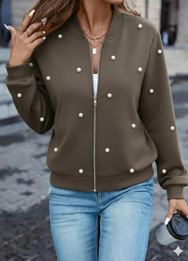 Kadın Uzun Kollu önden Fermuarlı Incili Kısa Modal Ceket