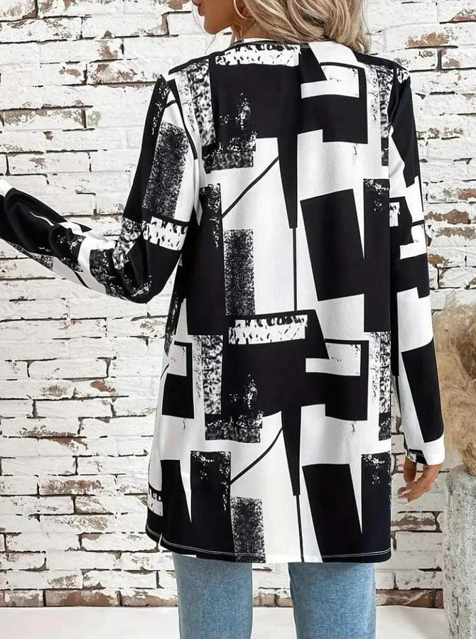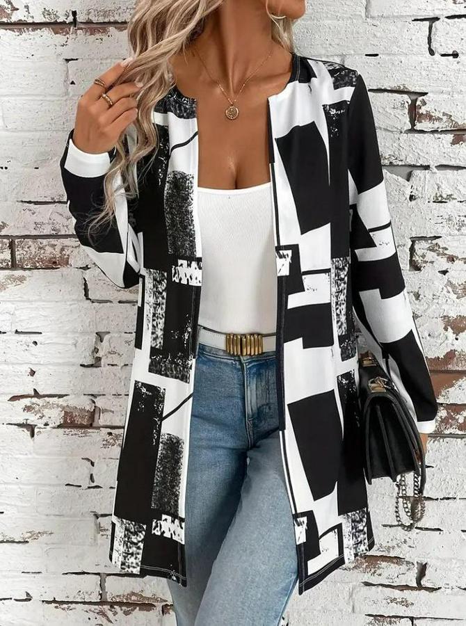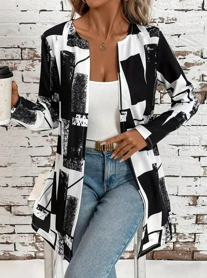 Uzun Kollu Önü Açık Desenli Modal Kısa Ceket