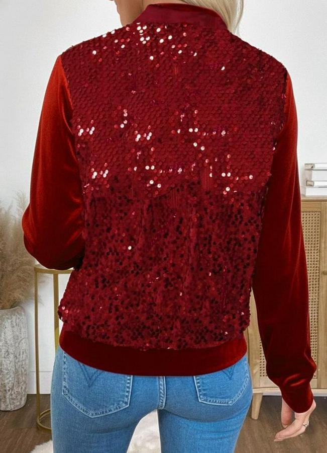 Uzun Kollu Önü Açık Fermuarlı Pulpayetli Kadife Ceket
