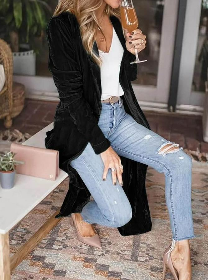 AnasayfaTüm ÜrünlerDış GiyimCeket & YelekCeketUzun Kollu Önü Açık Kolları Uzun Midi Ceket