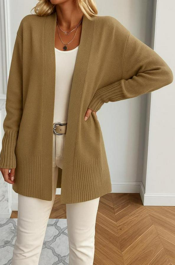 AnasayfaTüm ÜrünlerDış GiyimCeket & YelekCeketUzun Kollu Önü Açık Triko Hırka