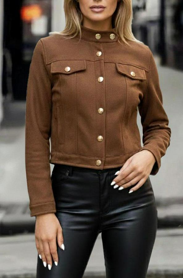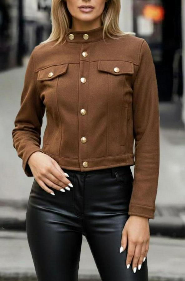AnasayfaTüm ÜrünlerDış GiyimCeket & YelekCeketUzun Kollu Yakadan Ve Önden Düğmeli Süet Kısa Ceket
