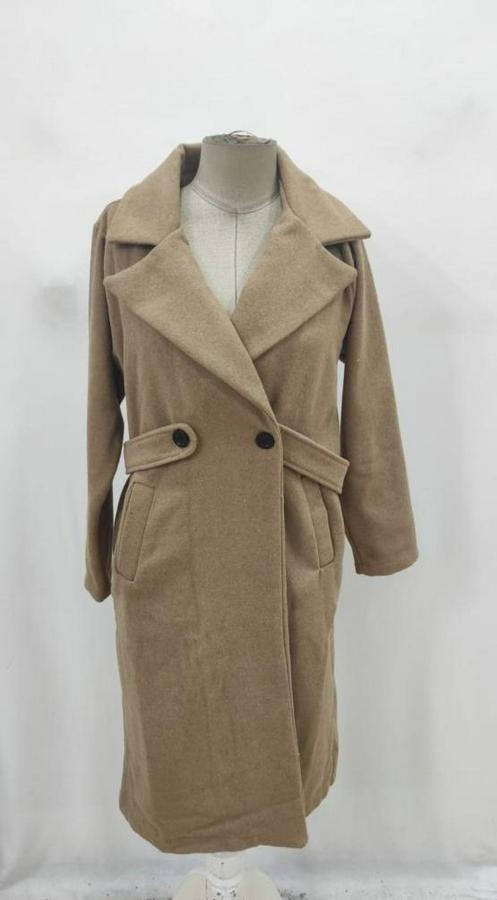 Kadın Uzun Kollu Yakalı Belde şerit Düğme Detaylı Cepli Mini Kaşe Kaban