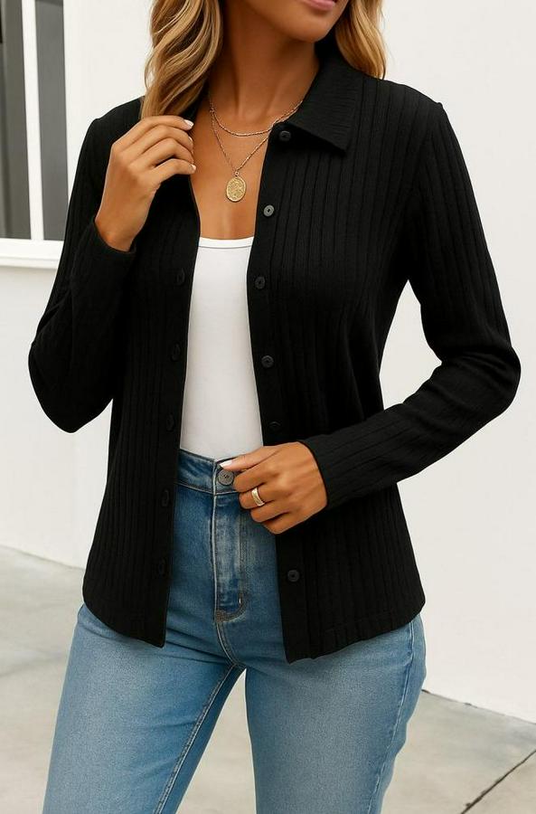 Uzun Kollu Yakalı Önden Düğmeli Triko Ceket