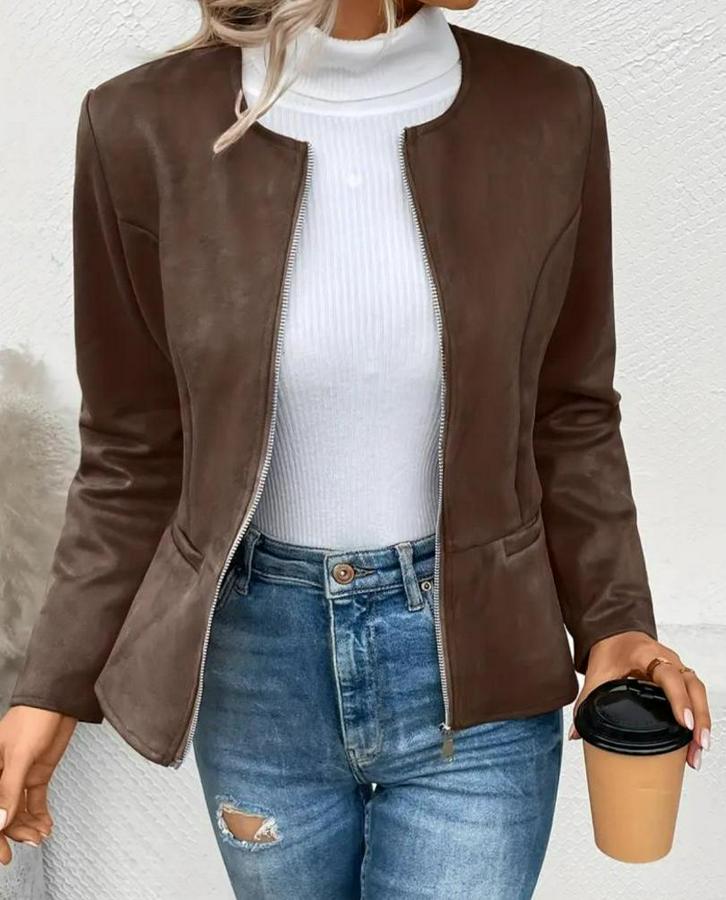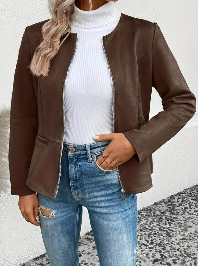 AnasayfaTüm ÜrünlerDış GiyimCeket & YelekCeketUzun Kollu Yuvarlak Yaka Önden Fermuarlı Süet Ceket