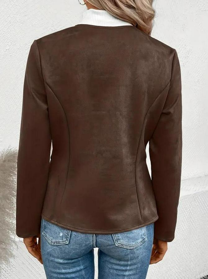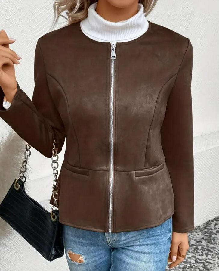 Kadın Uzun Kollu Yuvarlak Yaka önden Fermuarlı Süet Ceket