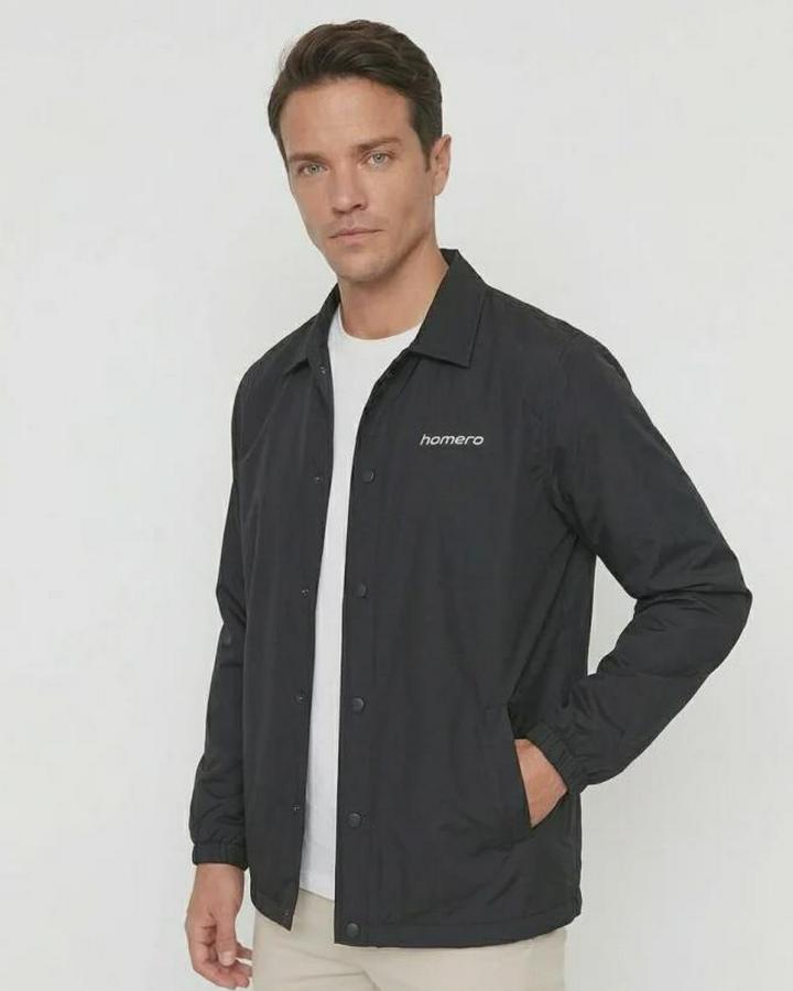Erkek Yağmur İtici İç Astarlı Çıtçıtlı İç Cepli Dış Cepli Mevsimlik Ceket - Siyah