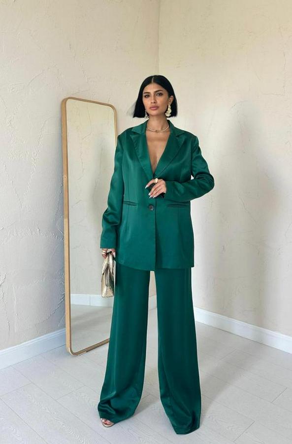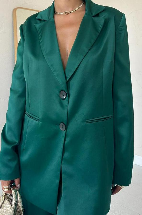 Zümrüt Saten Ceket Ve Pantolon Takım