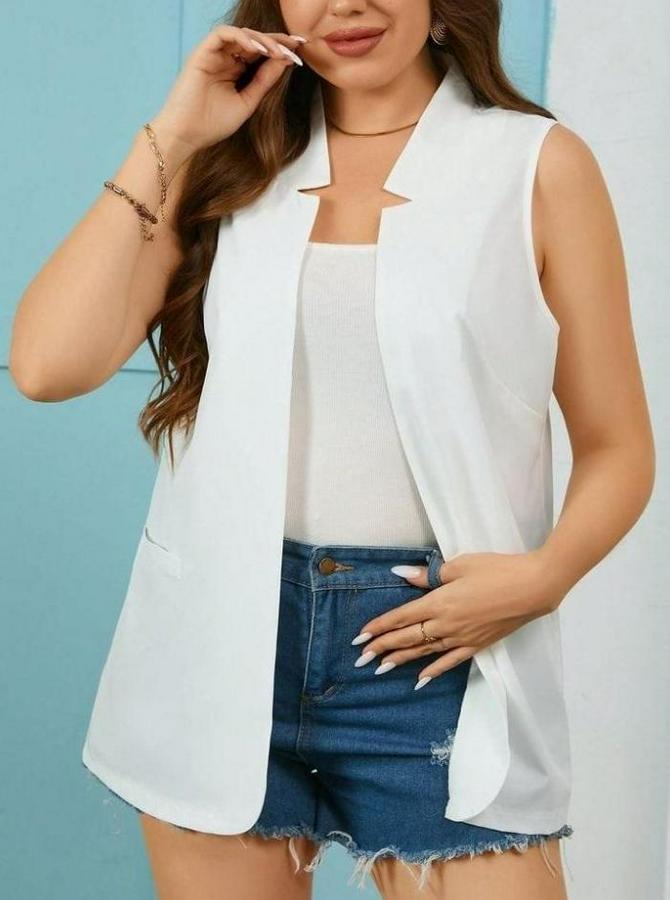 Duble Yaka Detay Sıfır Kol Ceket Yelek