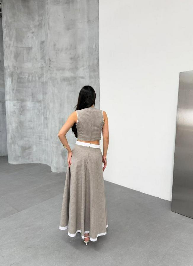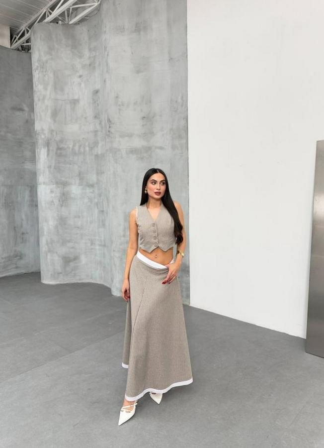 Gi̇o Çi̇zgi̇li̇ Garni̇li̇ Mi̇di̇ Etek Yelek Takim