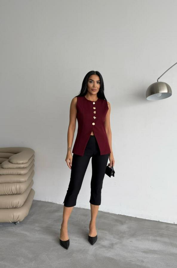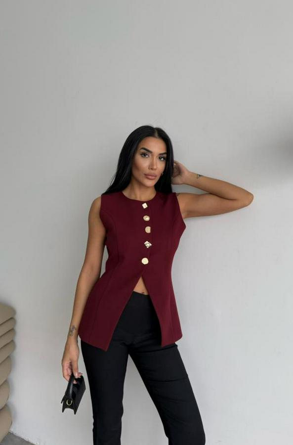 GOLD DÜĞME DETAYLI YELEK - Bordo