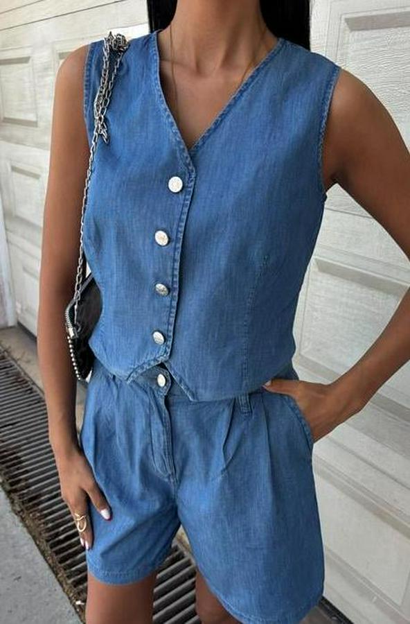 Gümüş Düğmeli Yelek Ve Şort Tensel Takım 10174