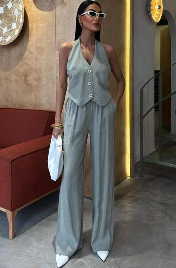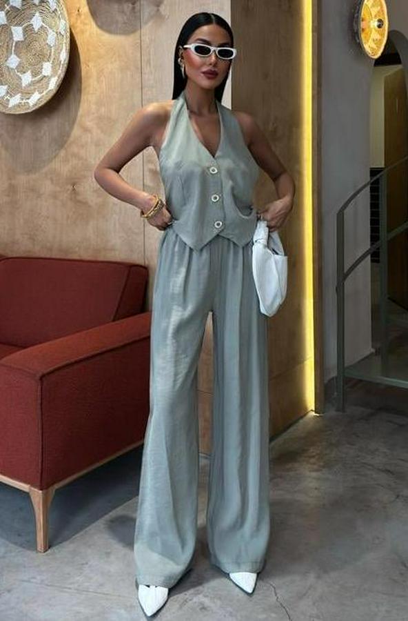 AnasayfaTüm ÜrünlerDış GiyimCeket & YelekYelekHalter Yaka Yelekli Modal Takım 10144
