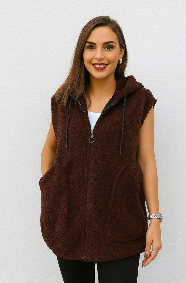 Kadın Kapüşon Ve Fermuar Detay Welsoft Kolsuz Yelek
