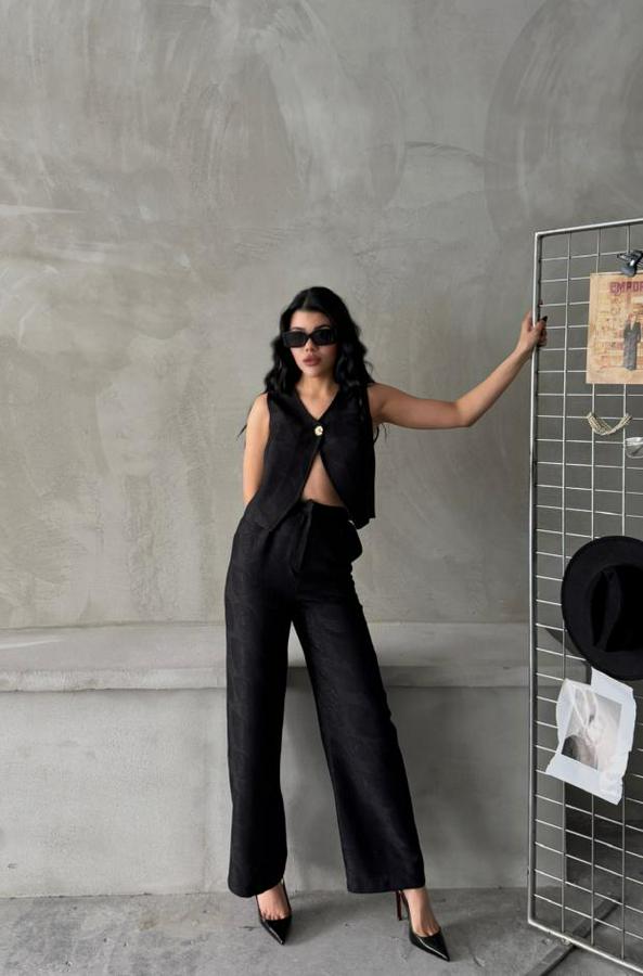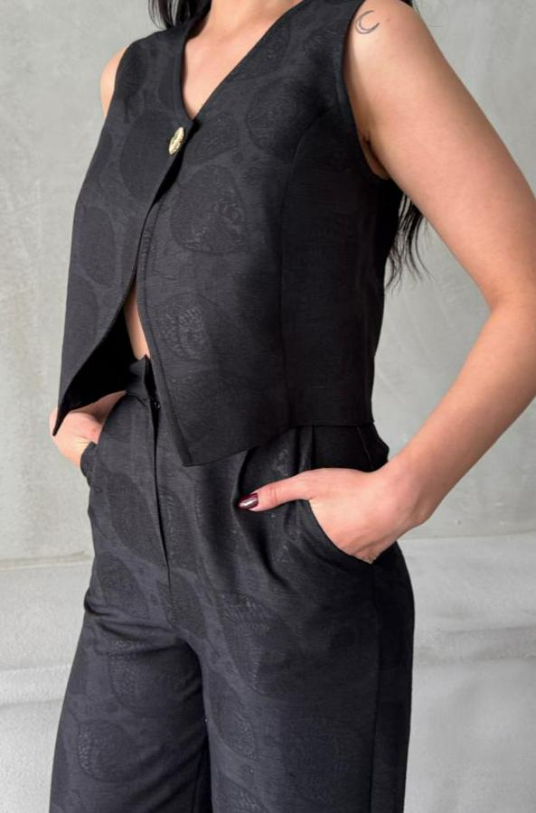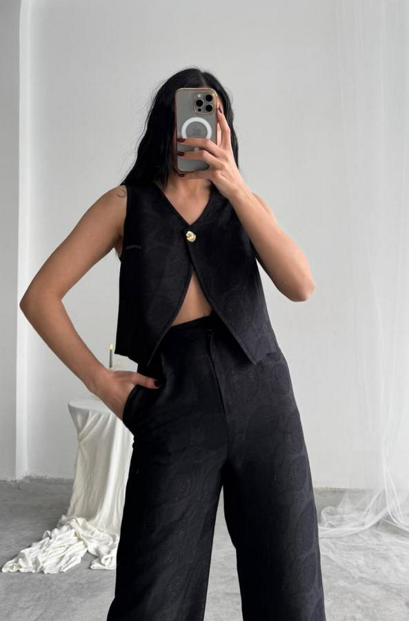 KETEN TEK DÜĞME YELEK-PANTOLON TAKIM - Siyah