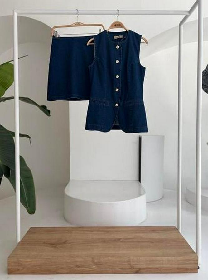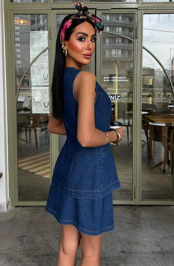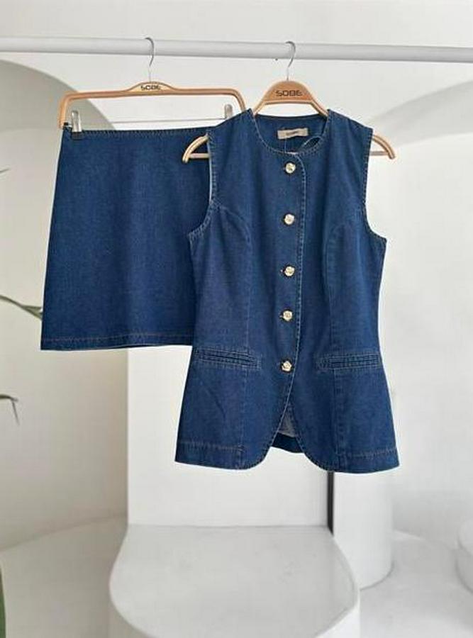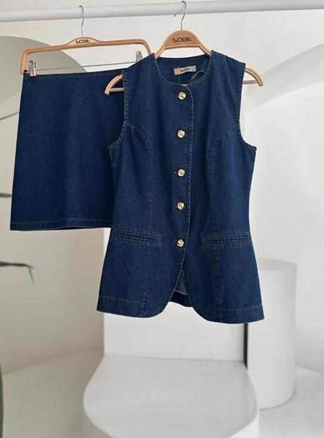 Kolsuz Yelekli Mini Etekli Denim Takım 10164