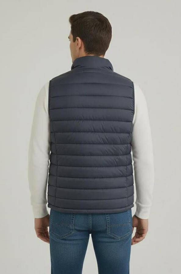 Erkek Şişme Fermuarlı Yelek Su Itici Kapitone Astarlı Kumaş Cepli Hafif Kışlık Spor Rahat Kalıp - Lacivert