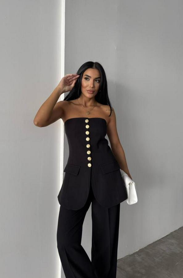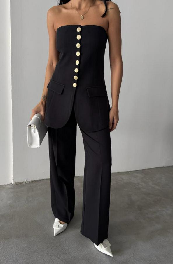TASARIM GOLD DÜĞMELİ STRABLEZYELEK - Siyah