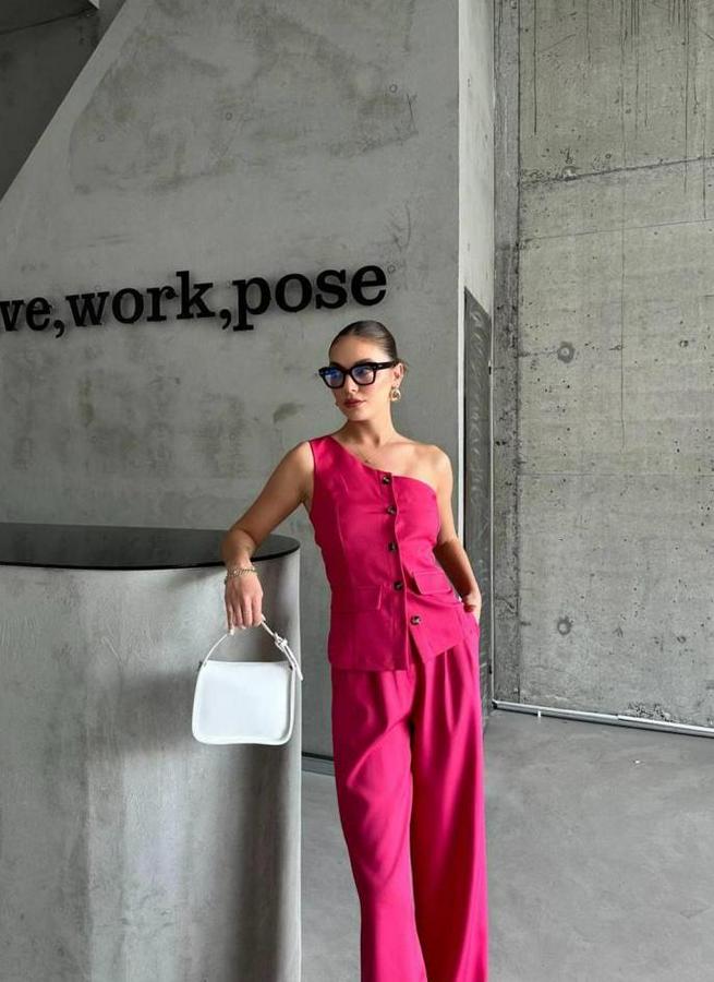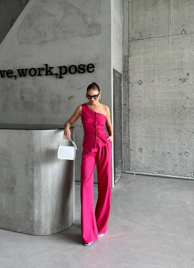 TEK KOL YELEK - PANTOLON TAKIM ATLAS - Fuşya
