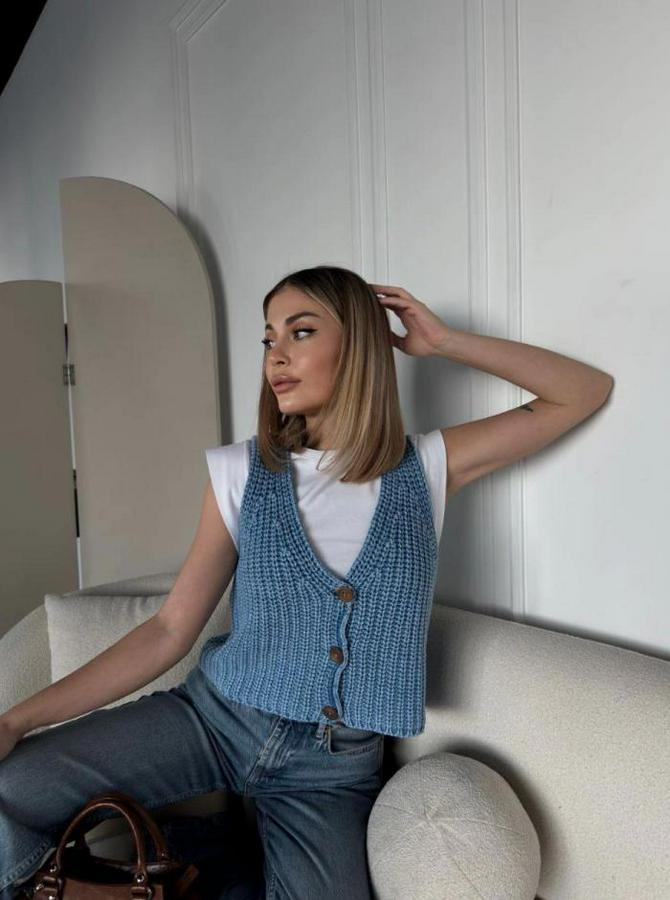 Triko Kolsuz Düğmeli Yelek - Mavi