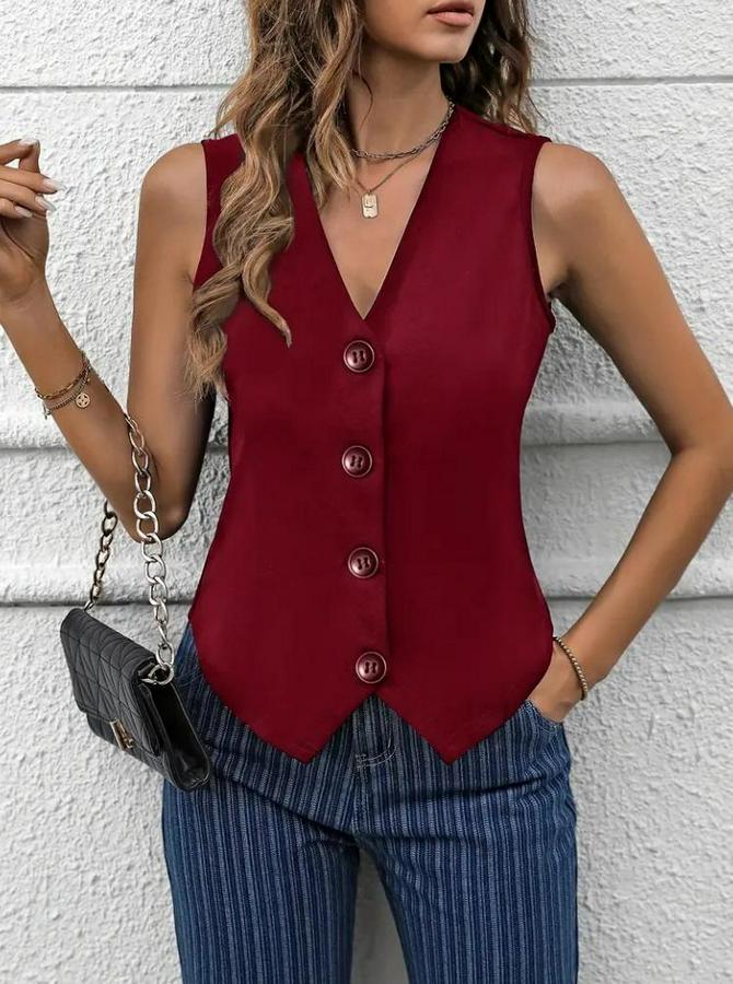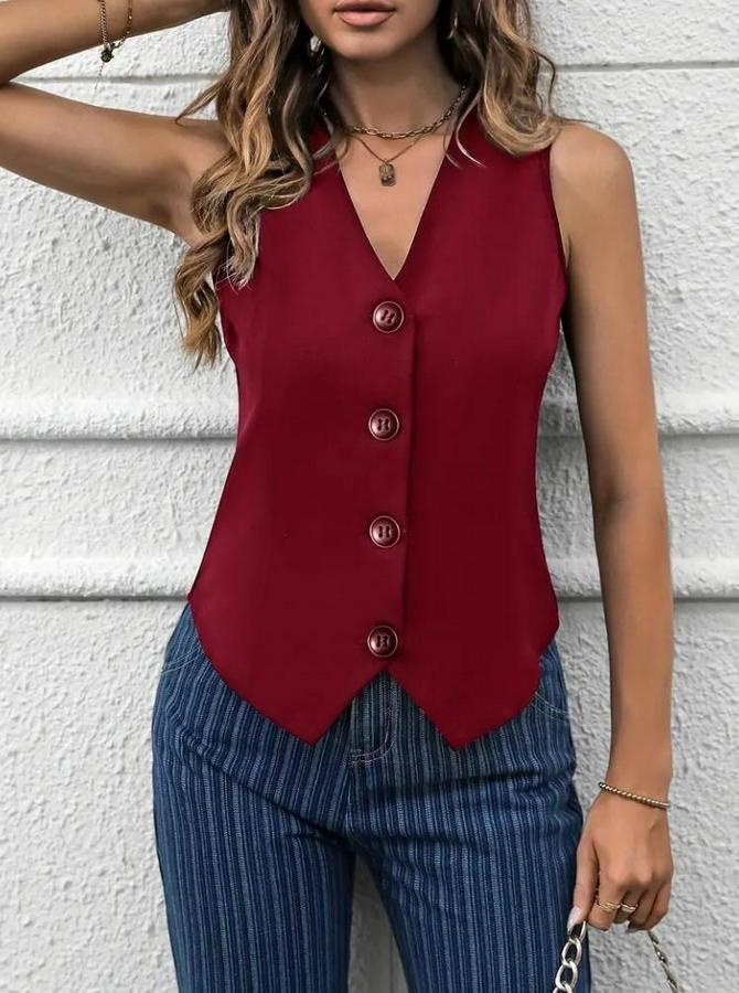 V Yaka Önden Düğmeli Ithal Krep Yelek