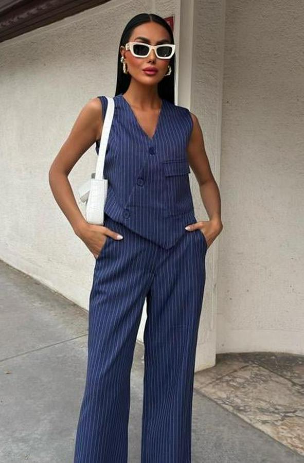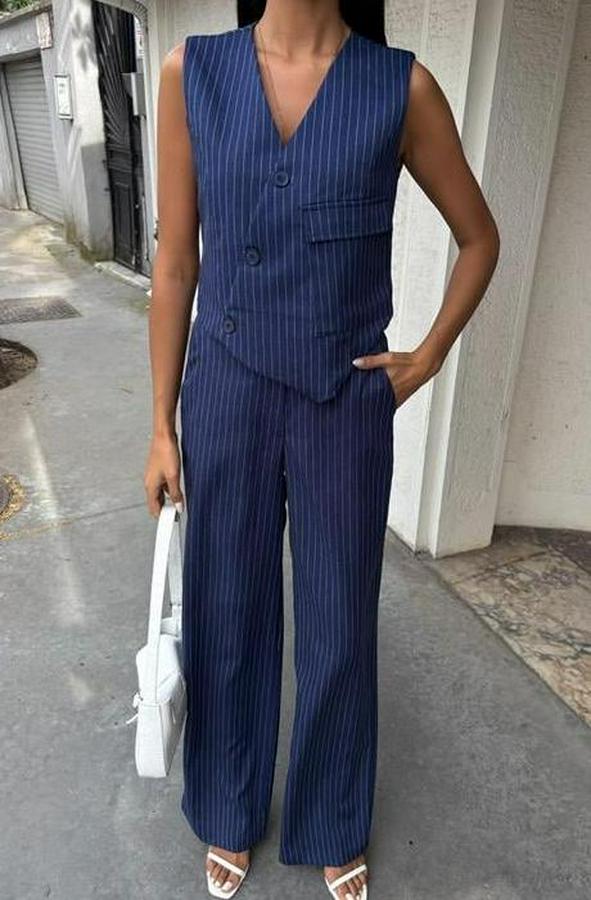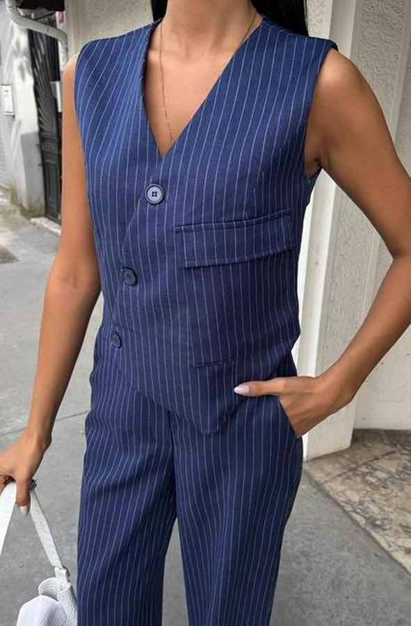 Yeleği Çapraz Detay Düğmeli Cepli Yelekli Takım 10150