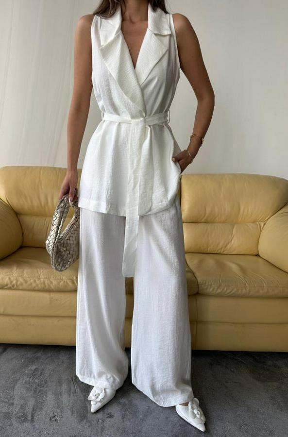 YELEK - PANTOLON TAKIM ÇİLEK KUMAŞ - Beyaz
