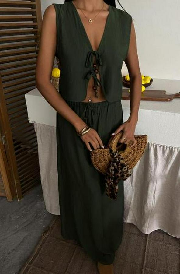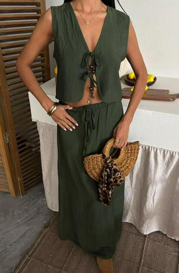 Yelek Önden Bağlamalı Uzun Etekli Takım 10192